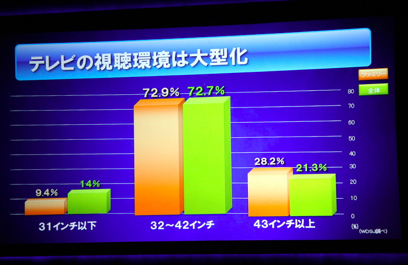 テレビの大型化が進み、32-42インチのテレビ所有社が7割以上に