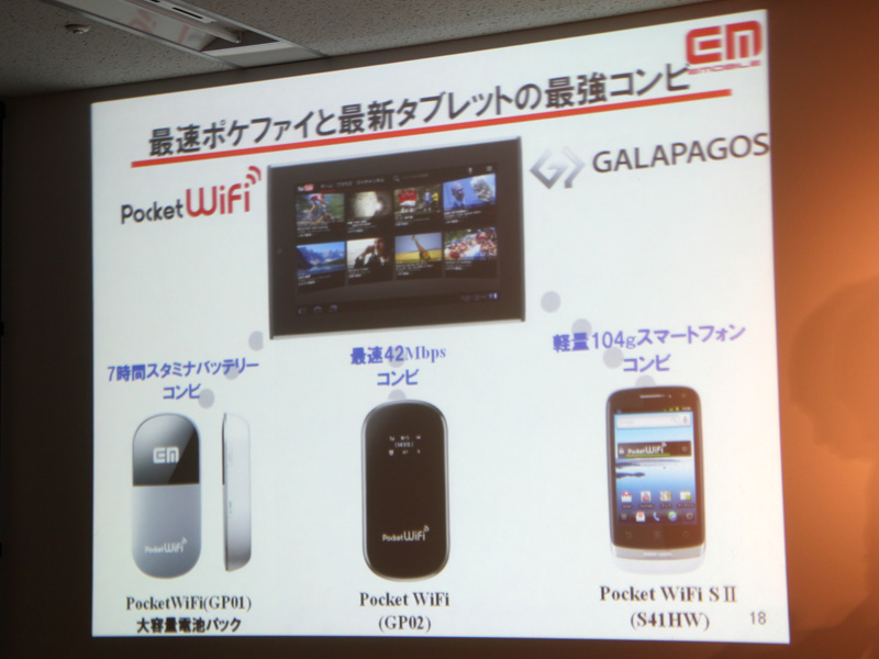 端末単体販売のほか、イー・アクセスの携帯型無線LANルーター「ポケットWiFi」とのセット販売も行われる予定