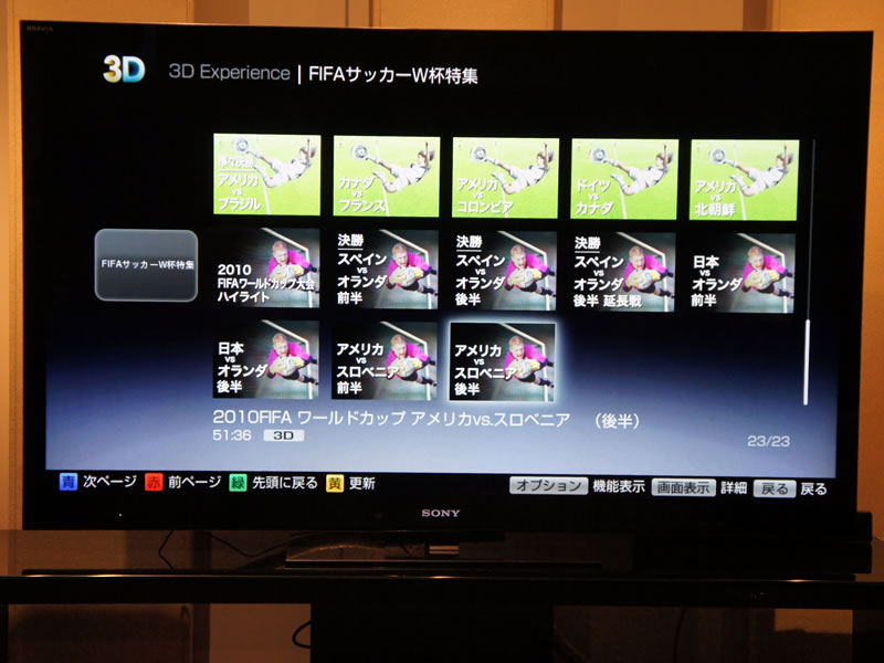 HOME > ニュース > AV&ホームシアターニュース アブリルのフルPVやスフィアのライブ映像なども 何が見られる?操作方法は? − ソニーの「3D Experience」を体験してきた ファイル・ウェブ編集部:小野佳希 2011年08月03日 前の写真へ 次の写真へ 「FIFAワールドカップ特集」などカテゴリーごとのメニューも用意 前の写真へ 次の写真へ この写真の記事へ 関連リンク 3D Experienceの詳細 ソニーストアの製品情報