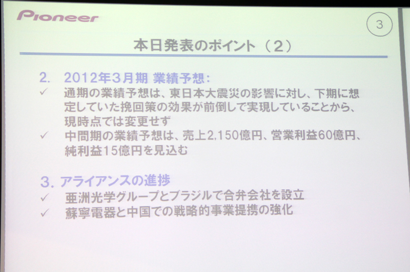 パイオニア、1Q連結業績決算を発表 − 7期連続黒字達成 カーナビ売上好調
