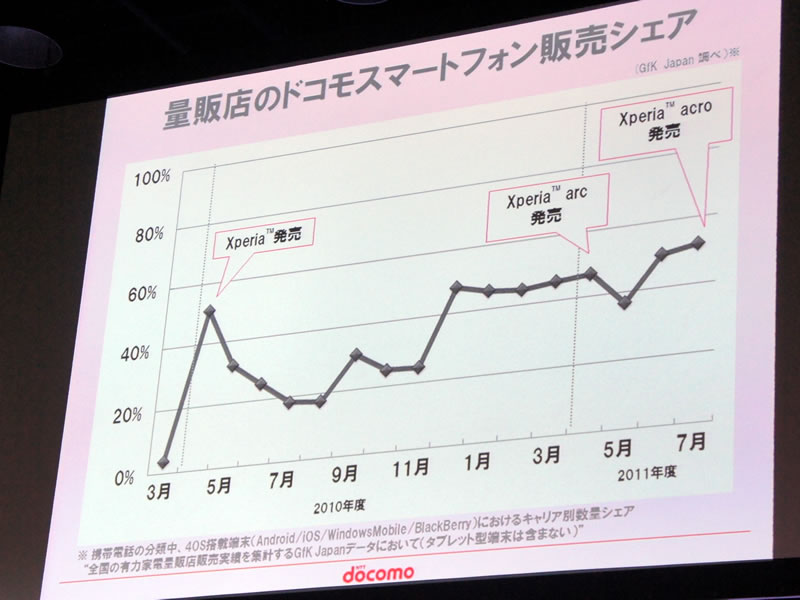 量販店でのドコモスマートフォンの販売シェアはXperiaの登場によって一気に伸びたという