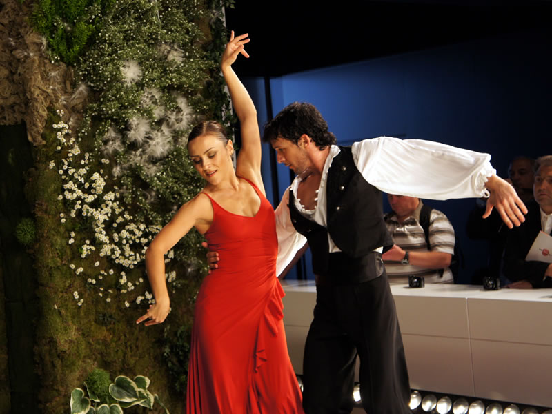 NEX-7などカメラの体験コーナーではダンサーをモデルに製品を試せるようになっている