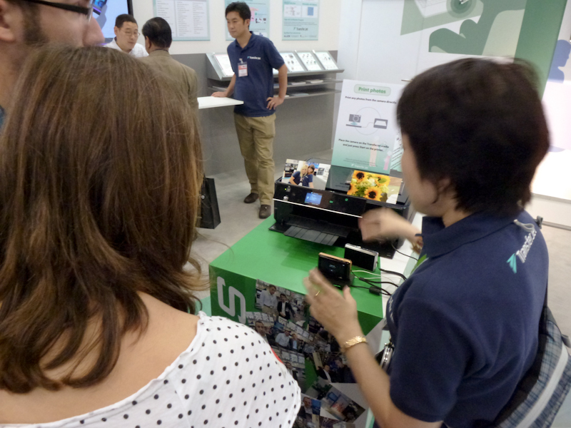 HOME > ニュース > AV&ホームシアターニュース 新LSIやモックアップの展示も <IFA>近接無線伝送技術「TransferJet」デモに注目 − 近づけるだけで簡単写真共有/電子決済 木寺務(SP) 2011年09月04日 前の写真へ 次の写真へ プリンターに対応クレードルを接続しデジタルカメラ内の写真をプリント 前の写真へ 次の写真へ この写真の記事へ 関連リンク トランスファージェットコンソーシアム IFA2011日本語サイト