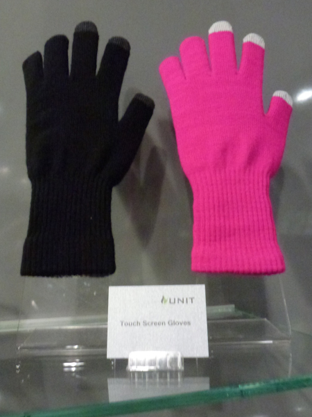 「UNIT」のタッチスクリーングローブは、ひとさし指と中指の先端に導電性の糸が編み込まれたスタンダードなツートンタイプ