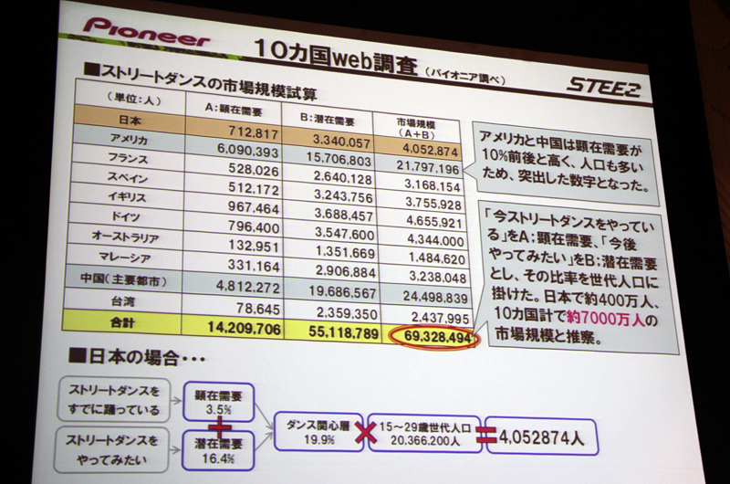 web調査によると、ストリートダンス人口は日本で約400万人、10カ国合計約7,000万人と推測されるという