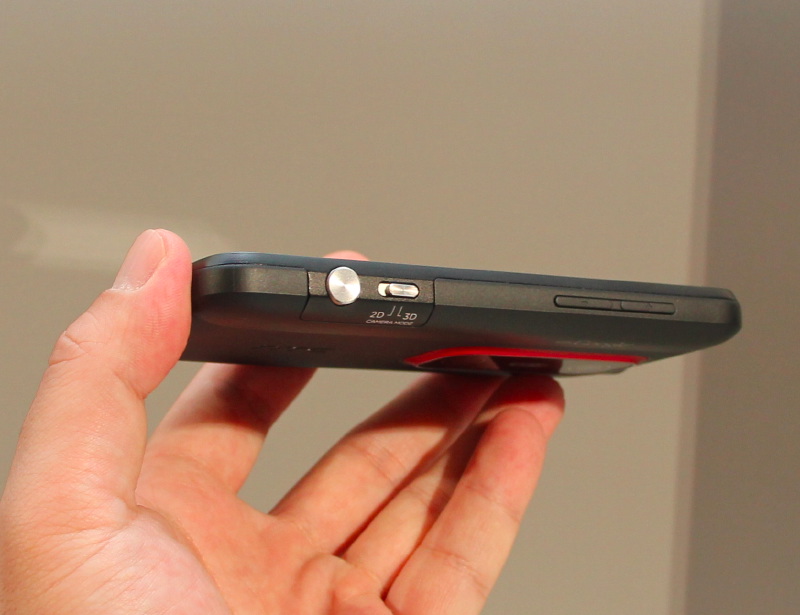 シャッターボタンや3D/2D切り替えボタンも用意する