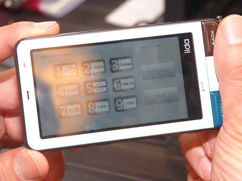 Androidスマホを使ってデモを行っている。写真は選局操作