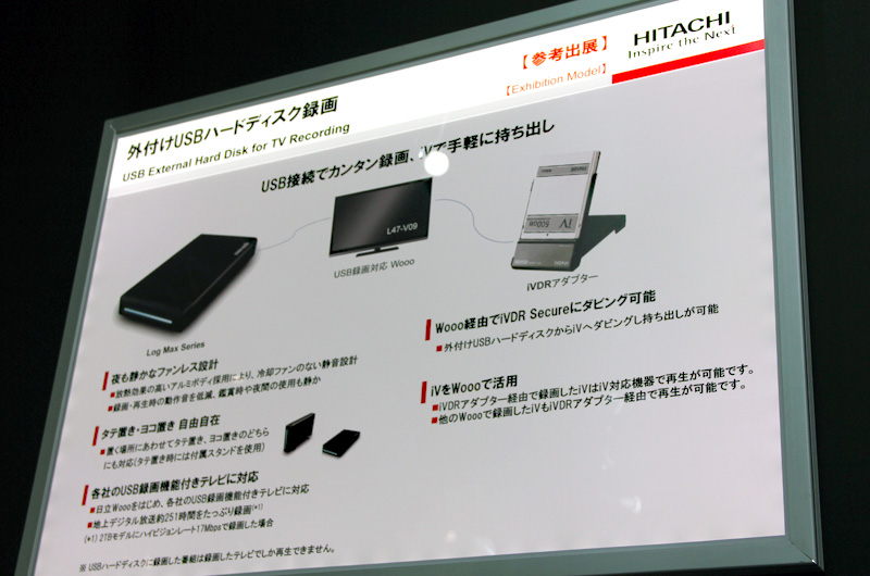 HOME > ニュース > AV&ホームシアターニュース S-LEDモデル最新機「L46-S08」なども訴求 <CEATEC>日立、DLNA対応iVDRレコーダーや1TB iVDRなど参考出展 ファイル・ウェブ編集部 2011年10月04日 前の写真へ 次の写真へ 外付けUSB-HDDの詳細 前の写真へ 次の写真へ この写真の記事へ 関連リンク CEATEC JAPAN 2011ニュース一覧 CEATEC JAPAN 2011 日立製作所