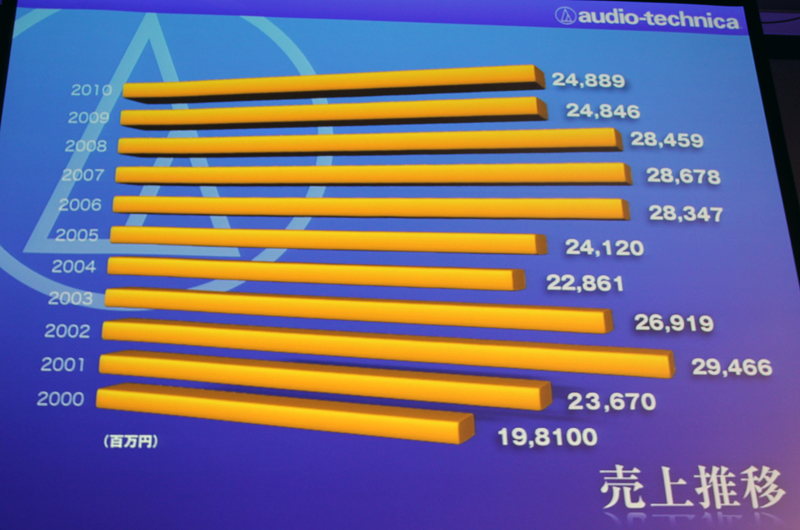 HOME > ニュース > AV&ホームシアターニュース エポックメイキングな製品も登場 松下社長が語る50年の歴史秘話/BoAさんが新曲初披露 − オーディオテクニカ発表会詳報 ファイル・ウェブ編集部 2011年10月13日 前の写真へ 次の写真へ 近年の売上推移 前の写真へ 次の写真へ この写真の記事へ 関連リンク (株)オーディオテクニカ オーディオテクニカ創立50周年記念サイト