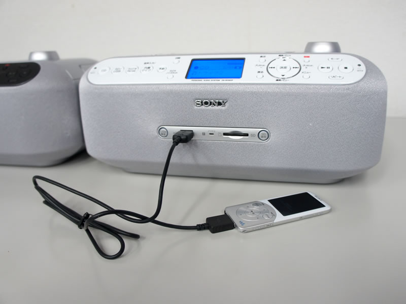 HOME > ニュース > AV&ホームシアターニュース 上位機は語学学習機能も搭載 ソニー、ラジカセ感覚のメモリーCDプレーヤー2機種を発売 − カセット代わりにSD/USBを採用 ファイル・ウェブ編集部 2011年10月18日 前の写真へ WALKMANを接続したところ 前の写真へ この写真の記事へ 関連リンク ソニー ソニーストアの製品情報