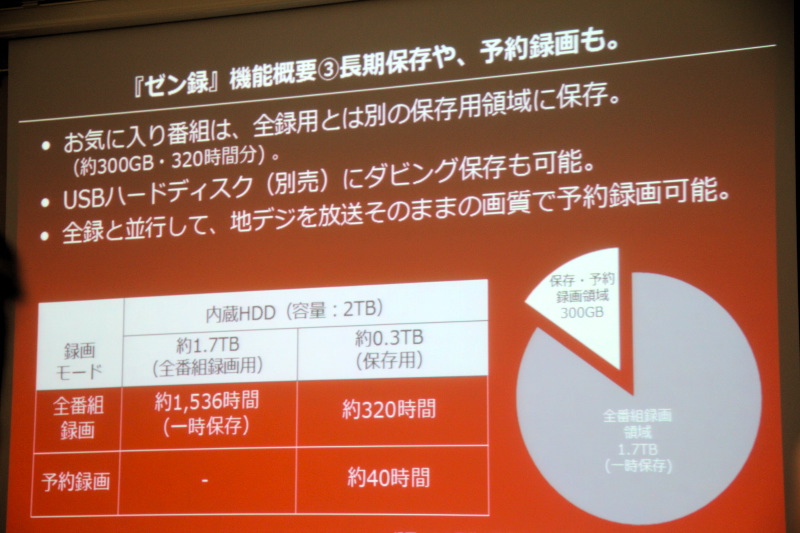 2TBのうち300GB分は保存・予約録画領域に割り当てられている