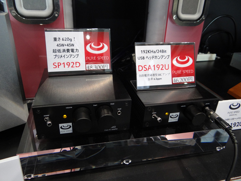 SAYAのブース。写真左は192/24対応のデジタルプリメインアンプ「SP192D」。写真右は192/24対応のUSB-DACを内蔵したヘッドホンアンプ「DSA192U」