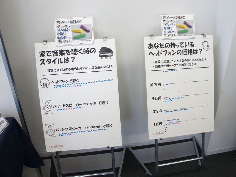 HOME > ニュース > AV&ホームシアターニュース ラックスマンブースでは特製プレゼントも <ヘッドフォン祭>ラックスマン、DA-100をさっそく試聴可能/ZERO AUDIOのBAイヤホン/ベスタクスは聴く以外の楽しみも訴求 ファイル・ウェブ編集部 2011年10月29日 前の写真へ 次の写真へ 自分が該当する項目に丸いシールを貼って回答する 前の写真へ 次の写真へ この写真の記事へ 関連リンク 秋のヘッドフォン祭2011 公式サイト 秋のヘッドフォン祭2011 関連記事一覧