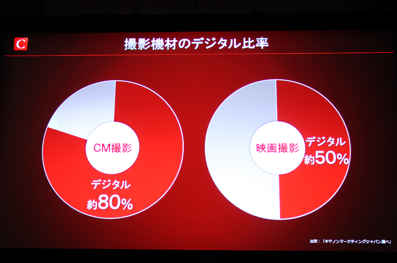 現在CM撮影では約80%、映画撮影では約50%がデジタル撮影だという