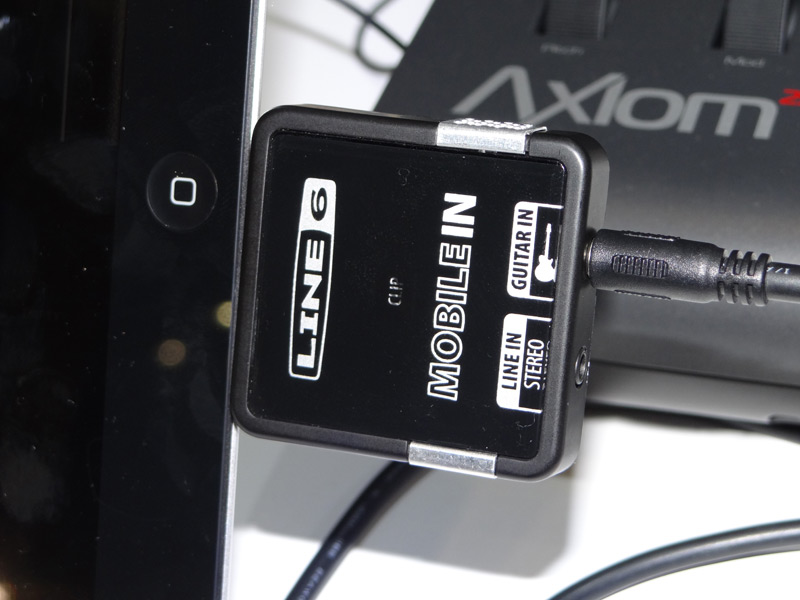 ティアックのブースにはiPad/iPhoneとの接続に対応したLine6のポータブルアンプシュミレーター「Mobile In」も出展されていた