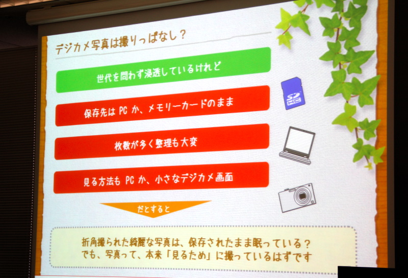 撮りっぱなしになっている写真を見る楽しみを提供したい、と本機を開発した背景を説明