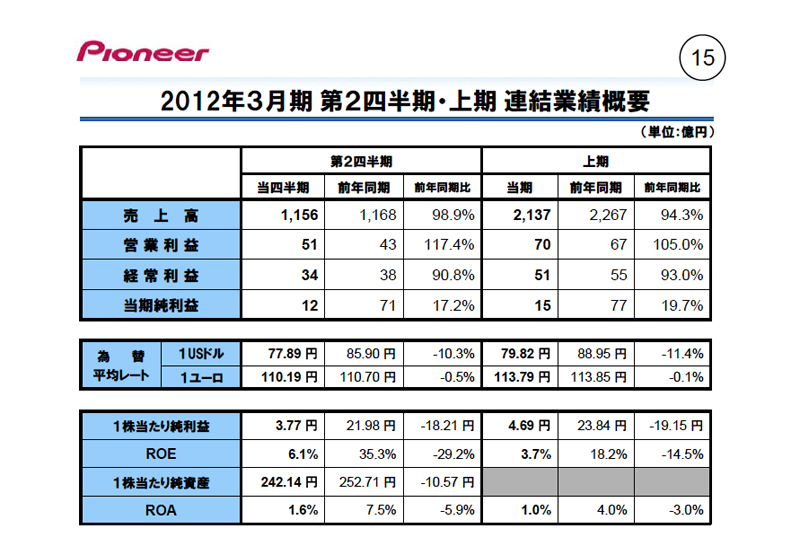 パイオニア、2Q連結業績を発表 − 営業利益が前年同期比17%増