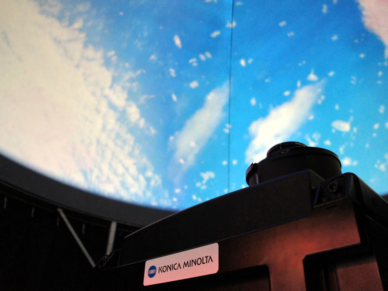 内部では4Kコンテンツを魚眼レンズを通してドームに投写