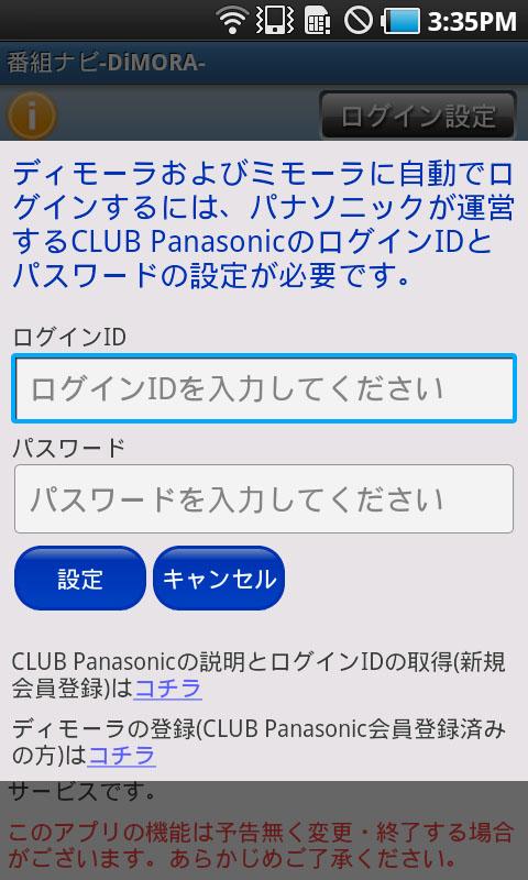 HOME > ニュース > AV&ホームシアターニュース ソーシャルTVアプリ「ピーチク」連携も パナソニック、ディモーラ−/ミモーラへ手軽にアクセスできるAndroidアプリ「番組ナビ -DiMORA-」 ファイル・ウェブ編集部 2011年12月06日 前の写真へ CLUB PanasonicログインIDとパスワードを事前に設定しておく 前の写真へ この写真の記事へ 関連リンク Androidマーケット「番組ナビ -DiMORA-」のアプリ情報