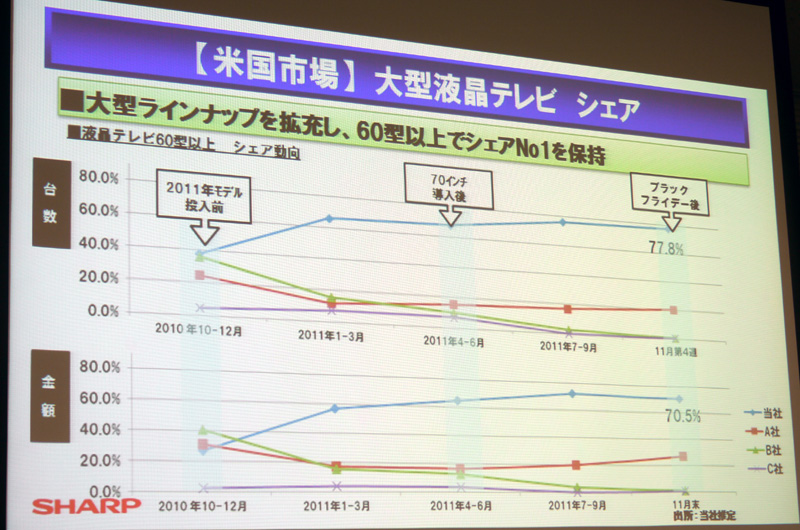 シャープ、北米の大型テレビ戦略を説明 − 60V型以上シェア78%、今期100万台超販売へ
