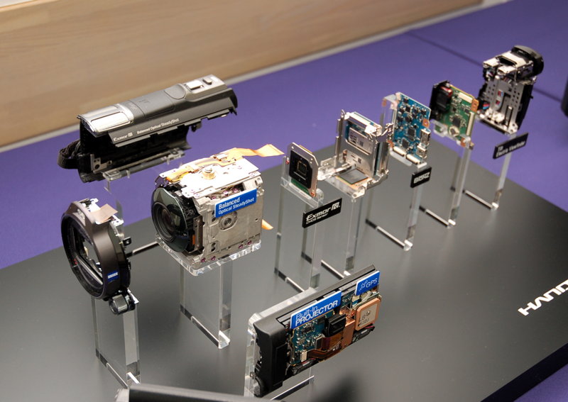本機のスケルトンモデル。レンズとセンサーを一体化したユニットを用い、手ブレ補正を低減した