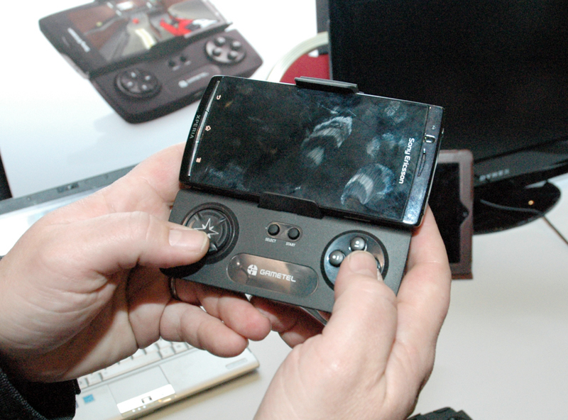 HOME > ニュース > AV&ホームシアターニュース 大いに盛り上がるプレイベント会場 <CES>CES Unveiledレポート ー スマートフォン/タブレット周辺グッズが充実 季刊オーディオアクセサセリー編集部 浅田陽介 2012年01月09日 前の写真へ 次の写真へ すでにEU諸国では販売されているiOS、Android対応ゲームコントローラー「GAMETEL」 前の写真へ 次の写真へ この写真の記事へ 関連リンク 2012 International CES公式サイト 2012 International CES記事一覧