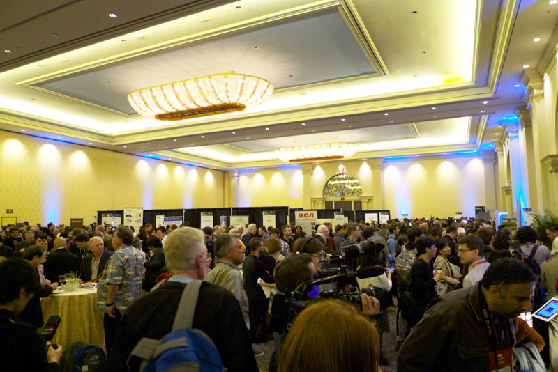 HOME > ニュース > AV&ホームシアターニュース スマホ対応機が多数登場 <CES>CES Unveiledレポート − プロジェクターからスピーカーまで多彩な製品が登場 AV REVIEW編集部:長濱行太朗 2012年01月10日 次の写真へ 毎年多数のプレス関係者が参加する「CES Unveiled」。今年も例年以上の参加者が各ブースに集まっていた 次の写真へ この写真の記事へ 関連リンク 2012 International CES記事一覧 2012 International CES公式サイト