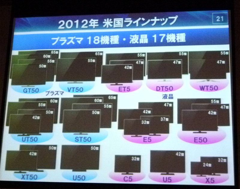 HOME > ニュース > AV&ホームシアターニュース スマート機能も大幅拡充 パナソニック、新パネル搭載のプラズマ/液晶“SMART VIERA”12年モデルを公開 ファイル・ウェブ編集部 2012年01月10日 前の写真へ 米国の2012年モデルラインナップ。計35機種を展開 前の写真へ この写真の記事へ 関連リンク パナソニック(株) 2012 Internatonal CES 関連記事一覧