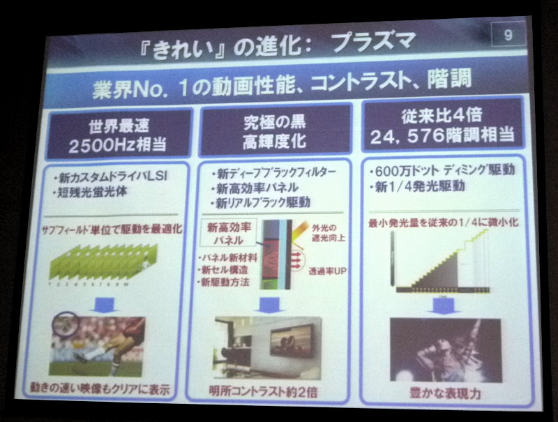 プラズマは「neo plasma black 2500」というパネルを採用。2,500Hz相当という駆動速度を実現した