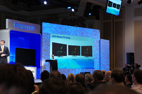 スクリーンには2012年のコンセプトの「SMART VIERA」の思想に準じたプラズマテレビとてしてVT/GT/STシリーズの新製品が投影されていた