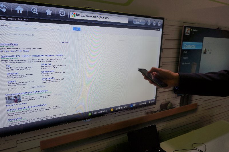 ブラウザによるWEB表示の操作がテレビ側のブラウザに移った後には、スマートフォンはそのままリモコンになる。通常のリモコンだけでなく文字入力連動、TV画面のブラウザにマウスカーソルが表示され、スマートフォンがそのままタッチパットになる
