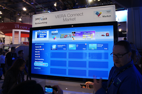 「VIERA Connect」のマーケットを実際に使用している場面。映画などのコンテンツの購入もできる