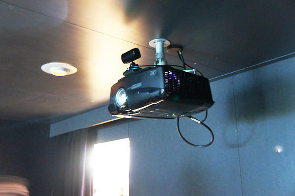 プロジェクターは天吊りで設置。LVP-HC7800Dは左右のレンズシフトはなく、上下シフトのみ手動で操作できる