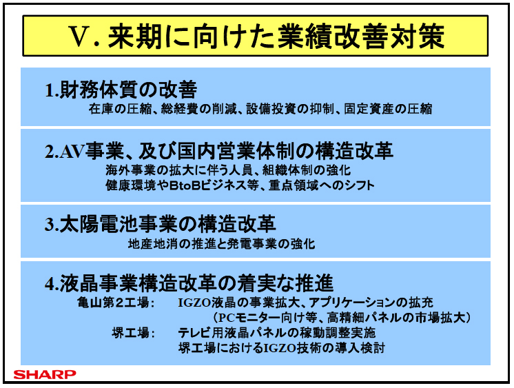 【更新】シャープ、通期業績を約2,900億円の赤字へ下方修正 − 液晶テレビの落ち込み影響大
