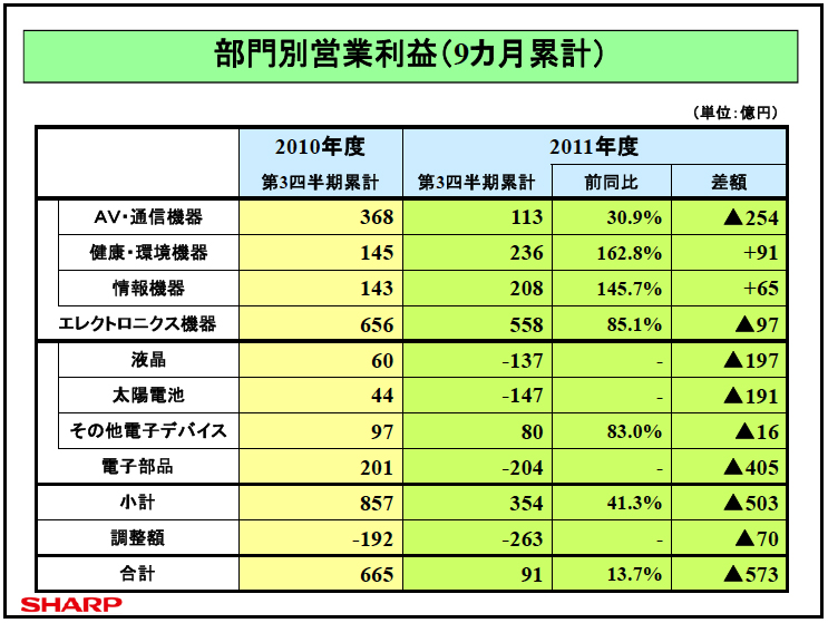 【更新】シャープ、通期業績を約2,900億円の赤字へ下方修正 − 液晶テレビの落ち込み影響大