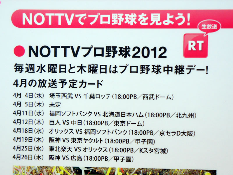 4月に放送が決定しているプロ野球のカード