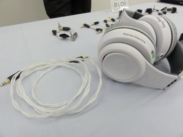 FannyWangのヘッドホンにあわせて開発したという高品位ヘッドホンケーブルも参考展示