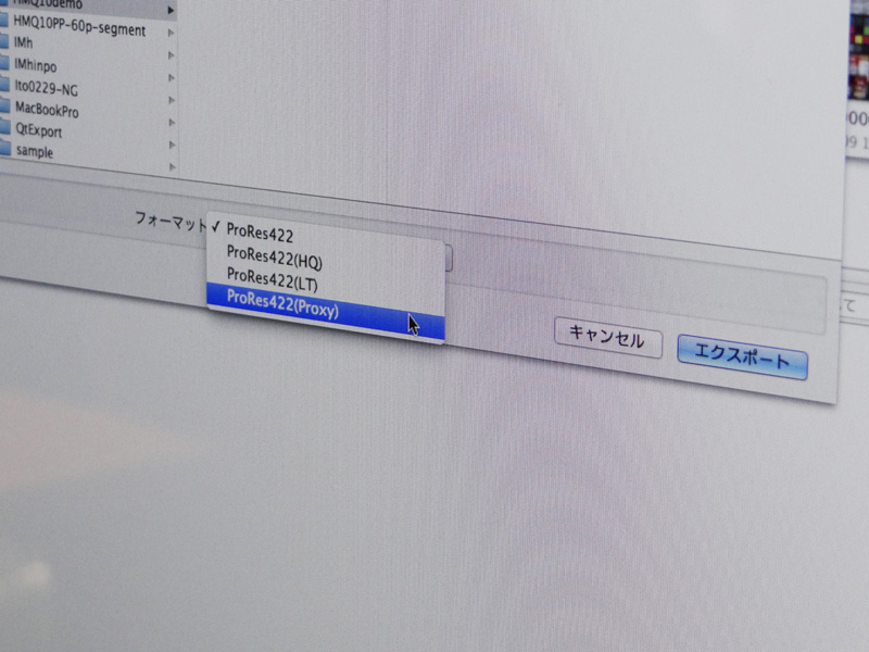 ファイルの書き出しは「ProRes 422」ビデオフォーマットに対応しており、変換を行う際に「ノーマル/HQ/LT/Proxy」から設定が選べる