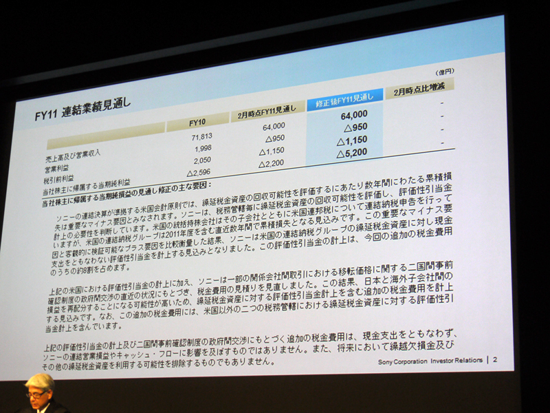 【情報追加】ソニー、11年度の最終赤字が5,200億円に拡大
