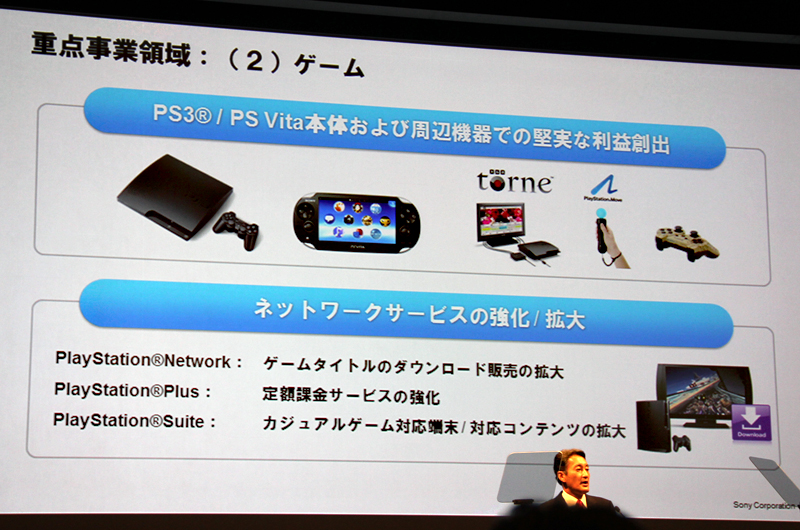 PS3やPS Vita、および周辺機器などでの利益創出に加え、ネットワークサービスも益々推進していくという