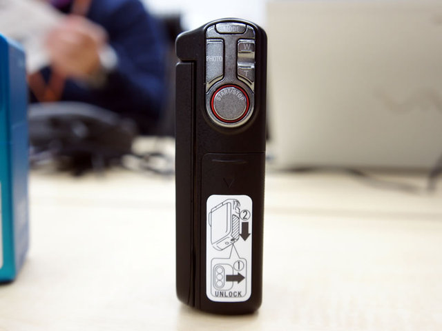操作ボタン類。ボタンの下を開けるとバッテリーやメモリーカードスロットになっている