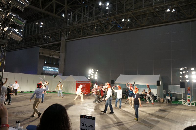「超運動場」ではスポーツチャンバラのイベント。来場者参加型イベントで17時からは「合戦」として簡単な受付をするだけですぐにチャンバラに参加できる