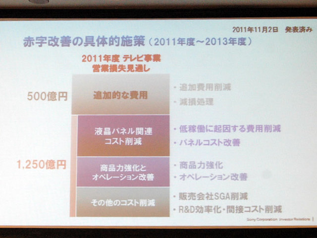 - 【更新】ソニー、テレビ事業の収益改善プランを発表 − 販売目標半減、次世代テレビの開発推進 2011/11/02