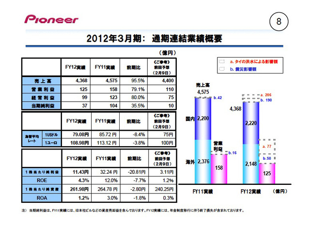 - パイオニア、2Q連結業績を発表 − 営業利益が前年同期比17%増 2011/11/09