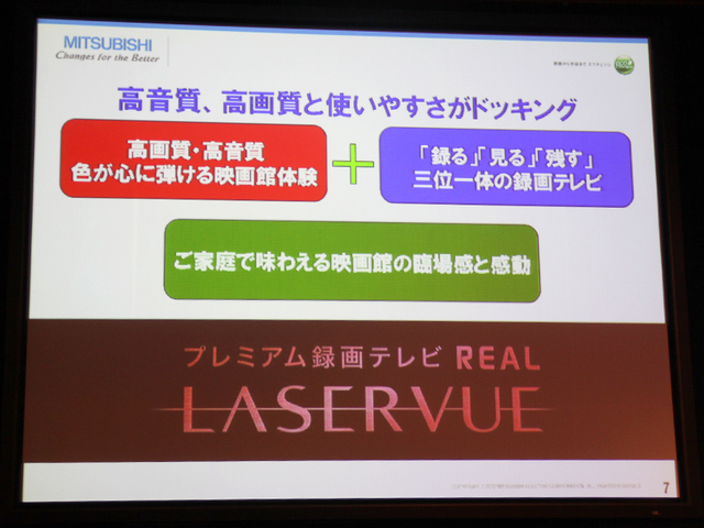 “REAL LASERVUE”は、高画質に加え、“高音質”と“使いやすさ”も全て備えるモデルとアピール