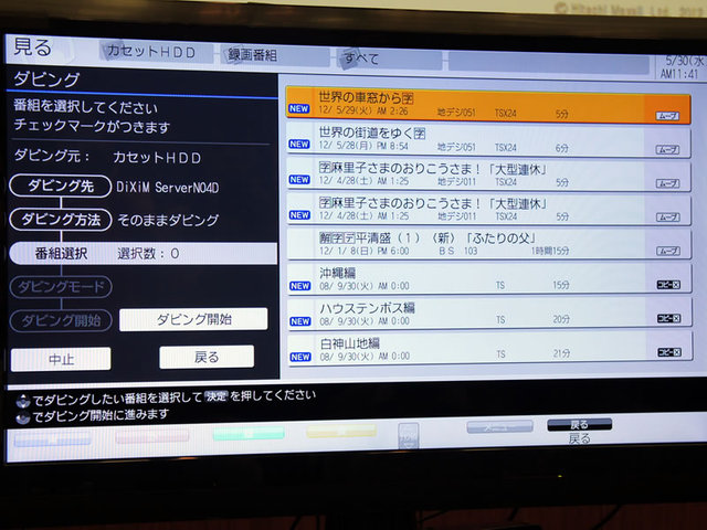 転送したい番組を一覧から選択