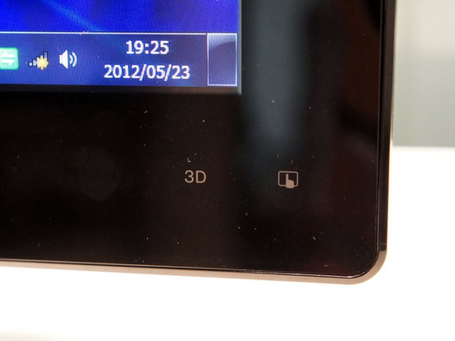 フロント前面右下に3D/2D表示切り替え用のタッチ部を装備