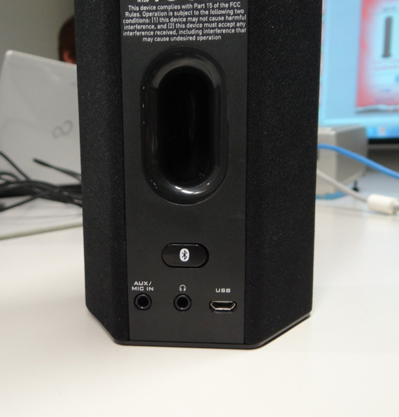 Sound BlasterAxx SBX 10の背面。バスレフポートを備える