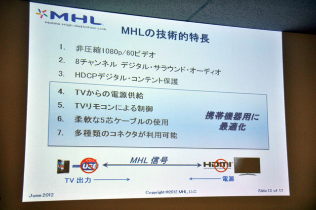 モバイル機器向けに最適化されたというMHLの技術的特長の解説