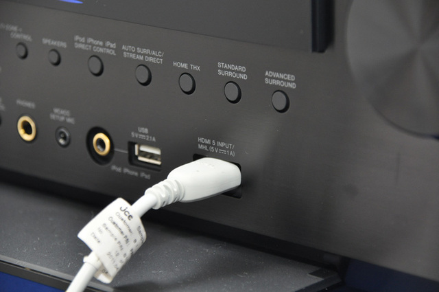 AVアンプはフロントパネルにHDMI/MHL共用の端子を搭載するモデルも登場した